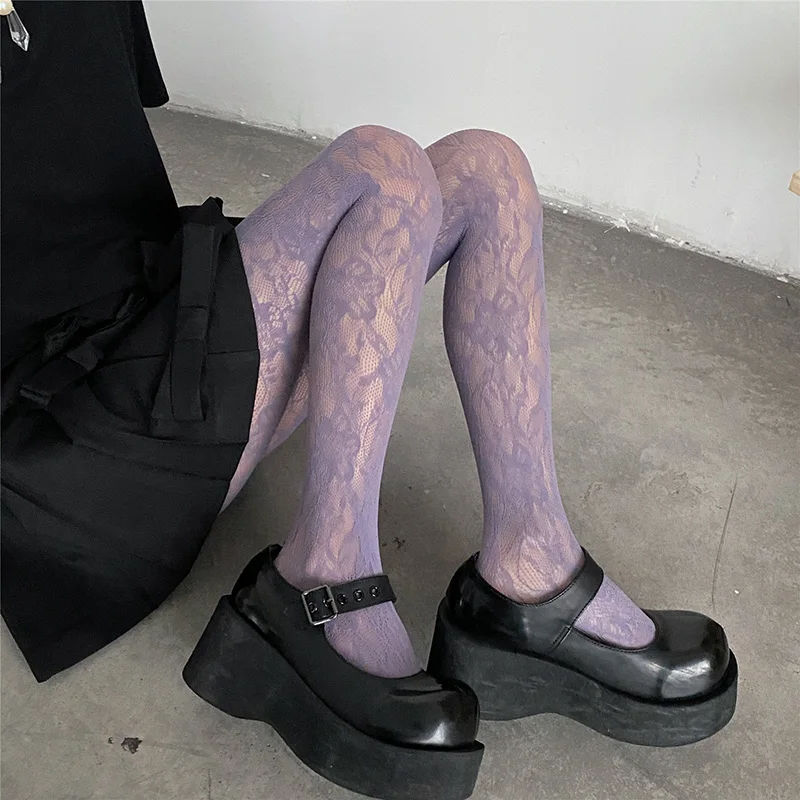 Purple Floral Lace Tights