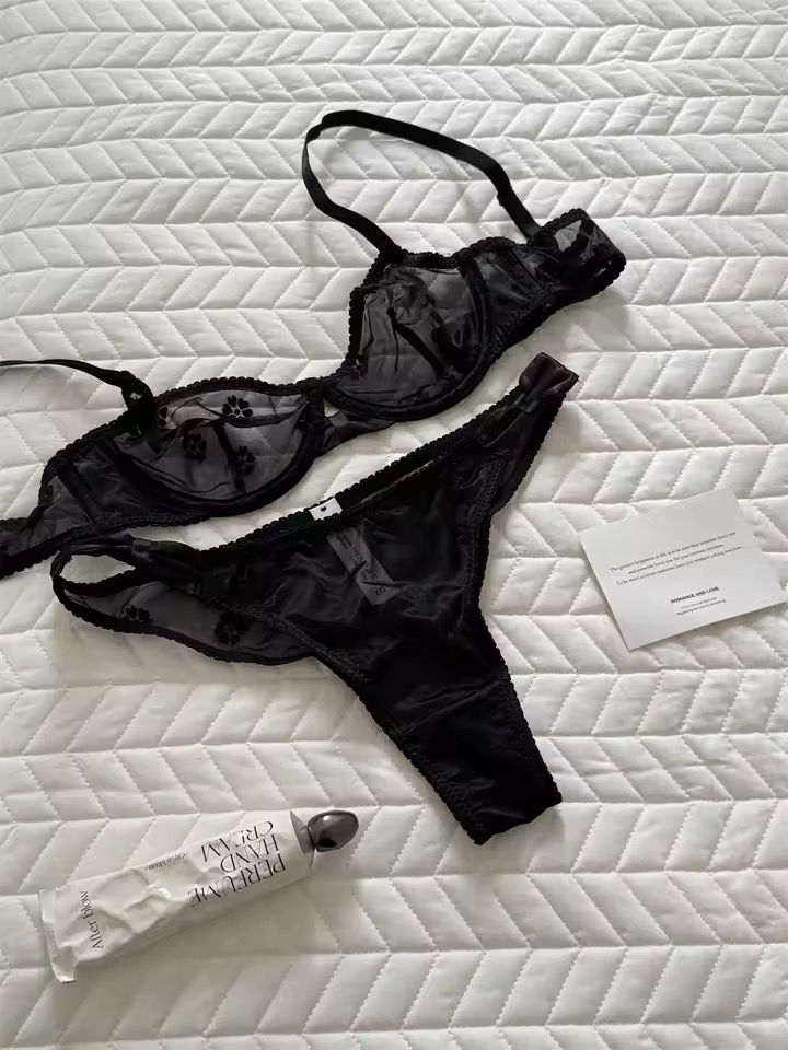 Elegant Embroidered Bra & Panties Set - Black
