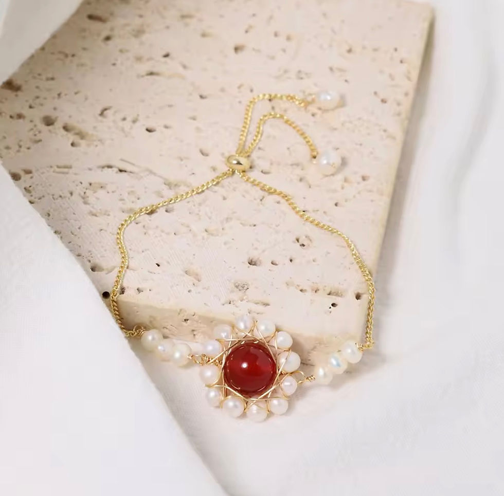 Red Agate Sunflower Pearl Bracelet